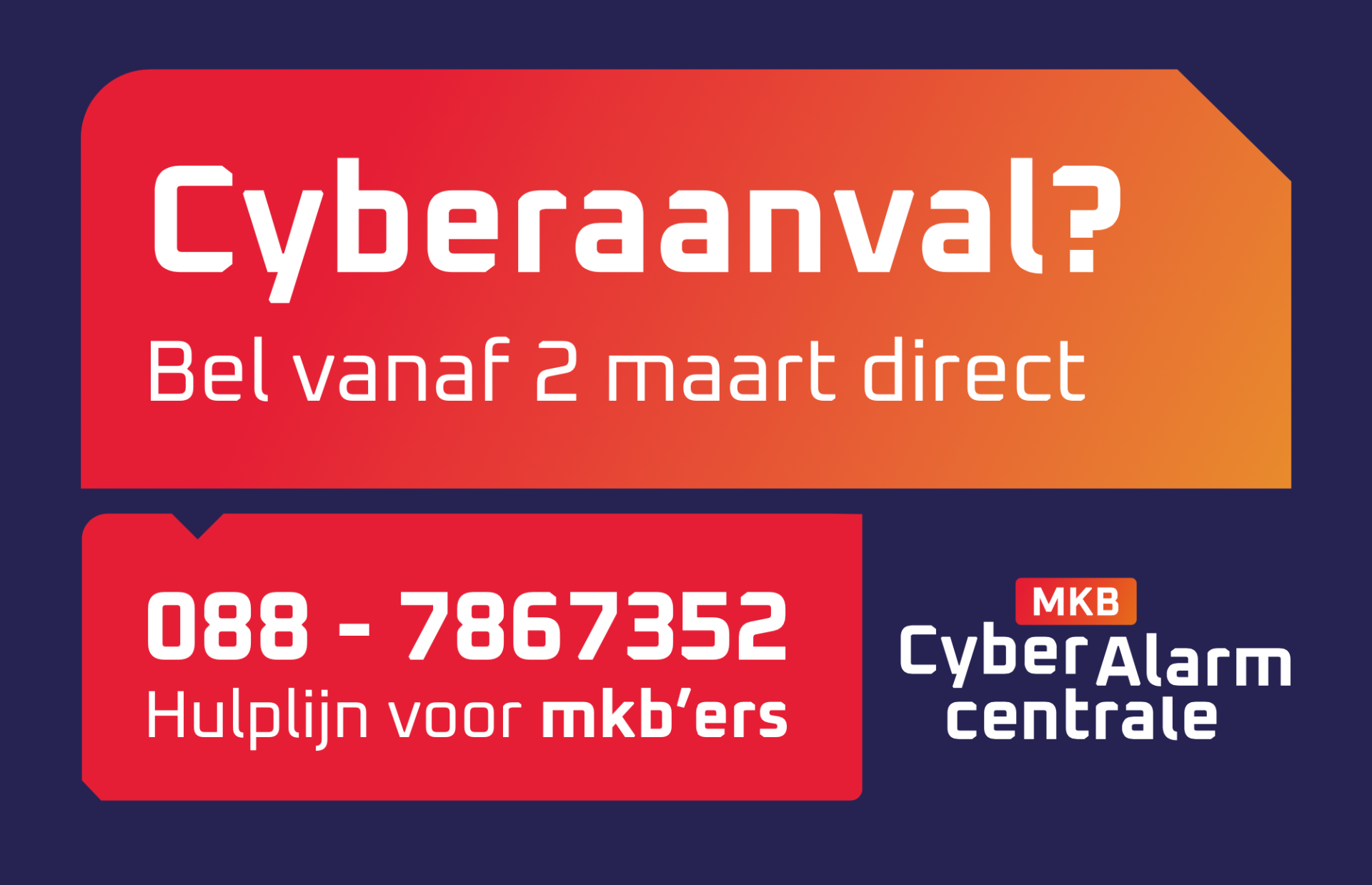 De MKB Cyber Alarmcentrale is een centraal telefoonnummer voor mkb'ers die acuut digitale noodhulp nodig hebben. Het is een pilotproject in Oost- en Noord-Nederland